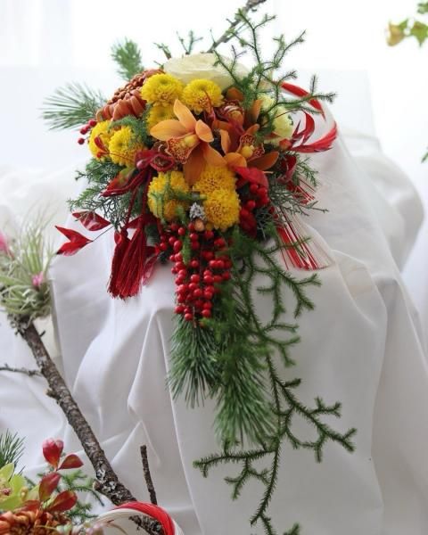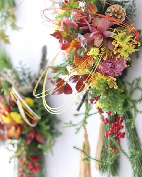 大輪マムをはじめ松や南天など、お正月を華やかに彩る、HAPPY COME厳選の花材をご用意いたします♪